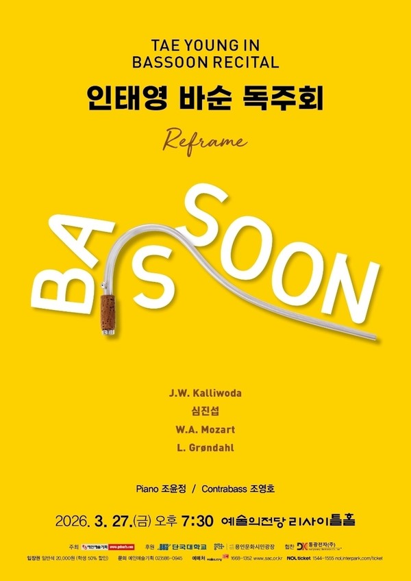 프로그램은 고전과 현대를 넘나들며 바순의 다층적인 매력을 드러낸다. 볼프강 아마데우스 모차르트의 작품에서 느껴지는 균형과 유머, 그리고 현대 작곡가의 새로운 시도까지 이어지며, 바순이라는 악기가 얼마나 넓은 감정의 스펙트럼을 지니고 있는지를 보여준다. 특히 심진섭의 작품이 국내 초연으로 포함되어 있어, 지금 이 시대의 음악적 감각을 함께 경험할 수 있다.