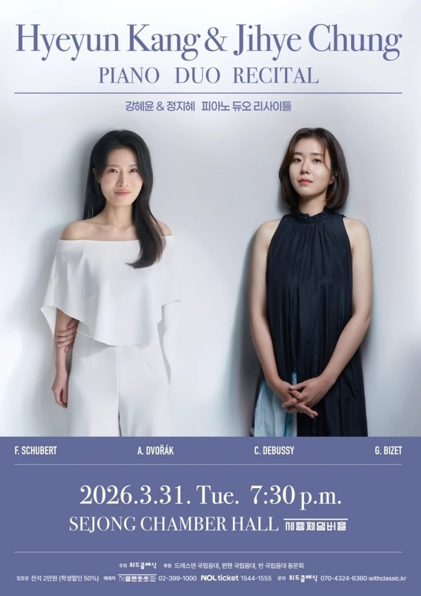 강혜윤과 정지혜가 나란히 무대에 선다. 두 피아니스트의 손끝이 만나는 순간, 음악은 단순한 연주를 넘어 서로의 시간과 감정을 포개는 언어가 된다. 오는 3월 31일 오후 7시 30분, 세종문화회관 체임버홀에서 열리는 이번 듀오 리사이틀은 네 손으로 완성하는 음악의 깊이를 관객에게 전할 예정이다.