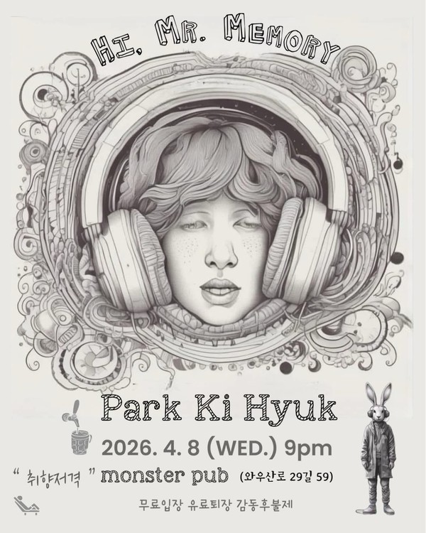 싱어송라이터 ‘하이 미스터 메모리(Hi, Mr. Memory)’ 박기혁이 오는 4월 8일 밤 9시, 홍대 몬스터펍에서 솔로 라이브 공연을 연다. 이번 무대는 화려한 연출보다 음악 그 자체에 집중하는 자리로, 아티스트와 관객이 가까이 호흡하는 친밀한 분위기 속에서 펼쳐진다.