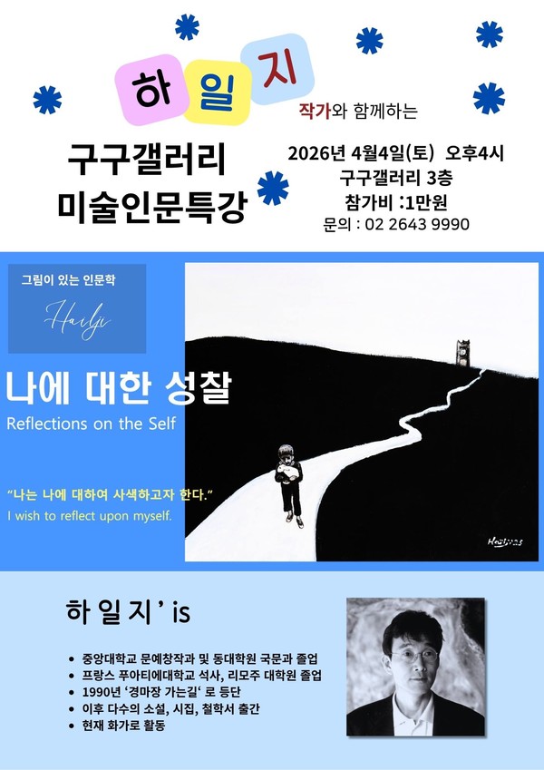 구구갤러리는 2026년 4월 4일 오후 4시, 서울 구구갤러리 3층에서 ‘작가와 함께하는 미술 인문특강’을 개최한다. 이번 강연은 ‘나에 대한 성찰(Reflections on the Self)’을 주제로, 그림과 사유가 어떻게 서로를 비추는지를 탐색하는 자리로 기획됐다.