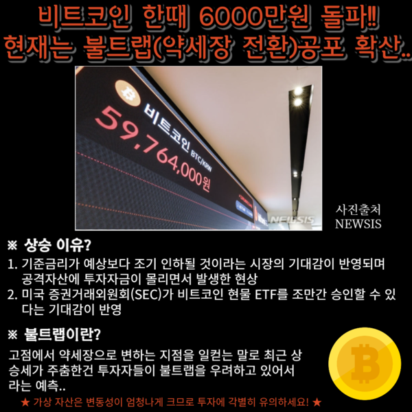 비트코인이 한때 6천만원을 돌파했다는 사실 알고 계신가요?